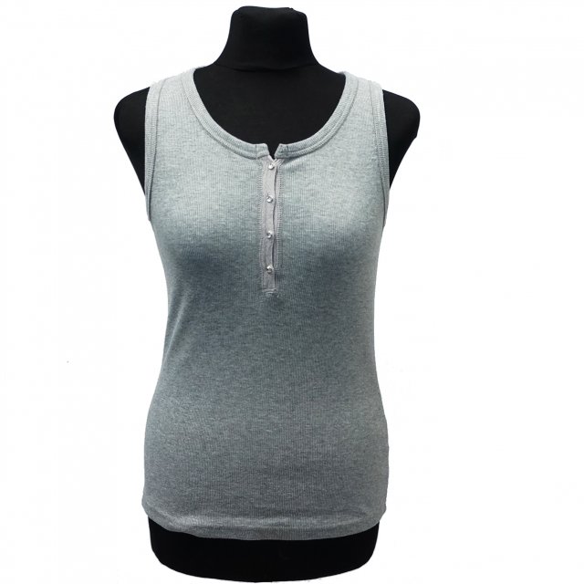 Klasyczny szary prążkowany top z ozdobnymi guziczkami
