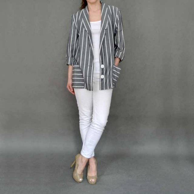 Rewelacyjny, leciutki i bardzo przewiewny żakiecik vintage. Bez podszewki, krój oversize. Prosty, nie taliowany. Na dole zapinany na dwa duże guziki. Z kieszonkami. Polecam.