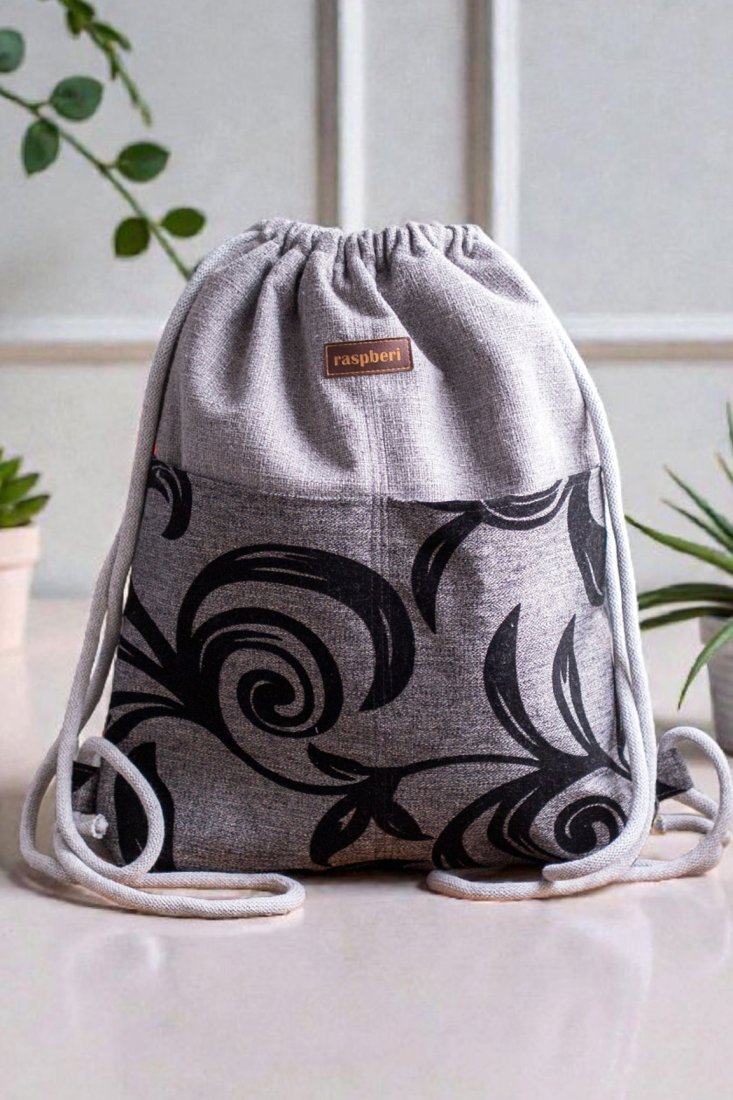 Workoplecak z plecionej tkaniny w kolorze szarym.