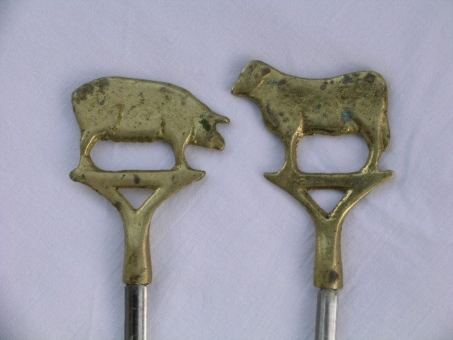 Długie, porządne metalowe szpikulce szaszłykowe, stemplowane stainless steel, tureckie. Z oryginalnymi, mosiężnymi zwieńczeniami. Praktyczne i ciekawe. 39 x 4,5 cm. Stan zachowania bardzo dobry.