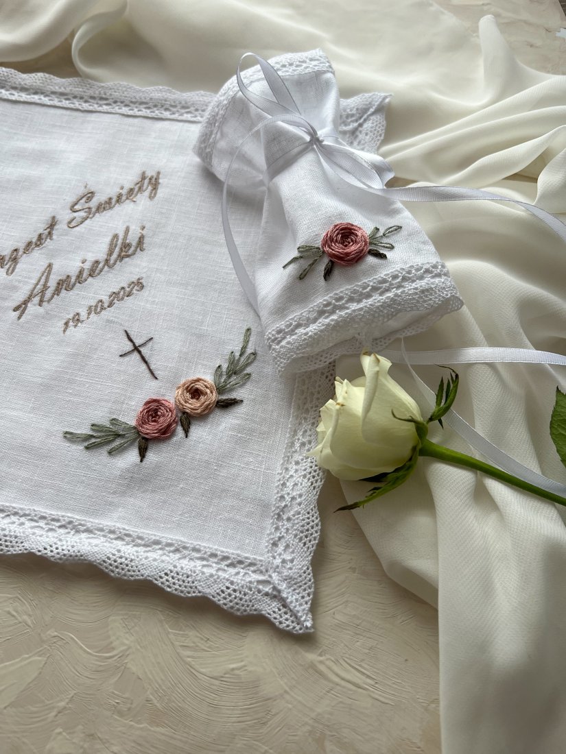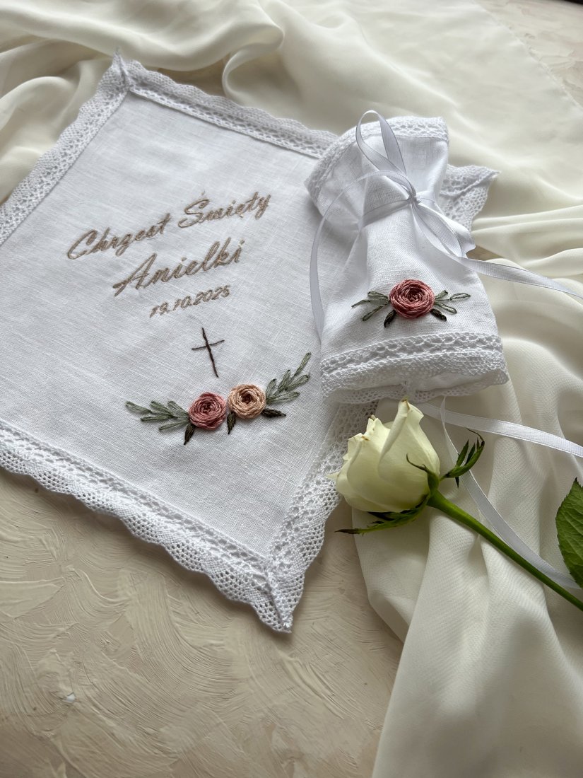 Szatka do Chrztu Świętego z haftem ręcznym – personalizowana