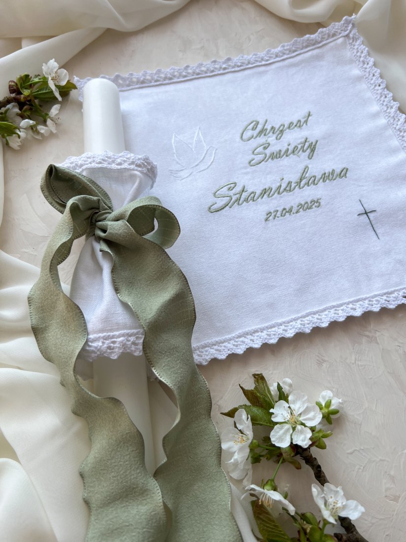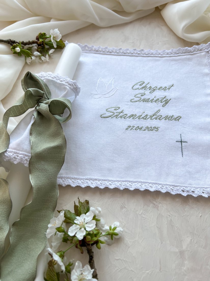 Szatka do Chrztu Świętego z haftem ręcznym – personalizowana