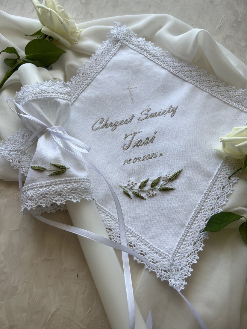 Szatka do Chrztu Świętego z haftem ręcznym – personalizowana