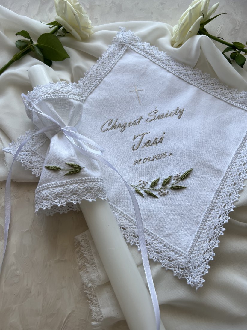 Szatka do Chrztu Świętego z haftem ręcznym – personalizowana
