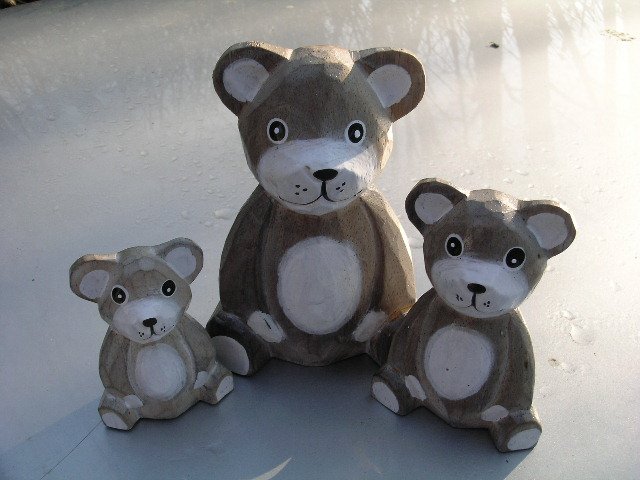 bsolutnie uroczo symboliczna Misiowa Rodzinka ;) Drewniane,ręcznie makiwane TEDDY BEAR. Zupełnie nowe - do zdjęć musiałam otworzyć torebkę w którą były zapakowane. Kolory delikatne,wykończnie satynowe. Ozdoba do kolekcji i na prezent :)