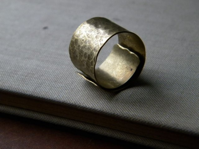 obraczka z młotkowanego mosiadzu. szerokosc 15mm.rozmiar regulowany. na zdjeciu ustawiony na rozmiar 15.