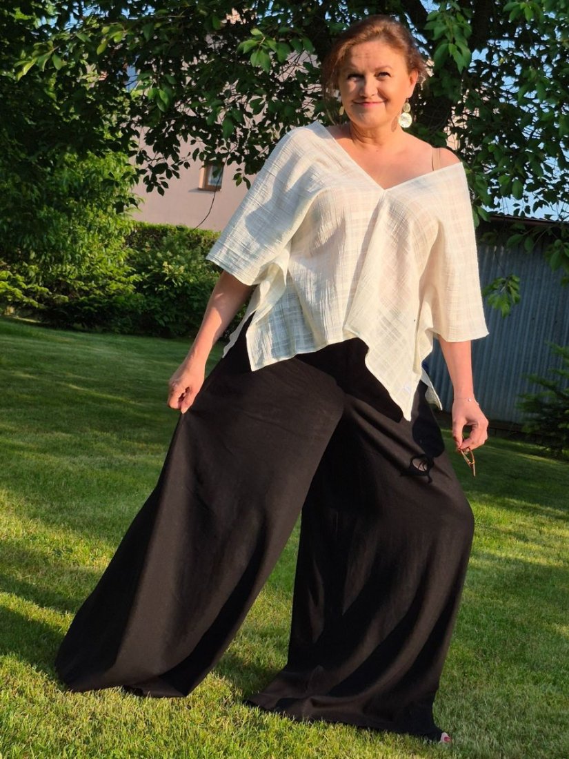 Tagi: #lniane spodnie, #spodnie na lato, #spodnie z kieszeniami, #szerokie spodnie