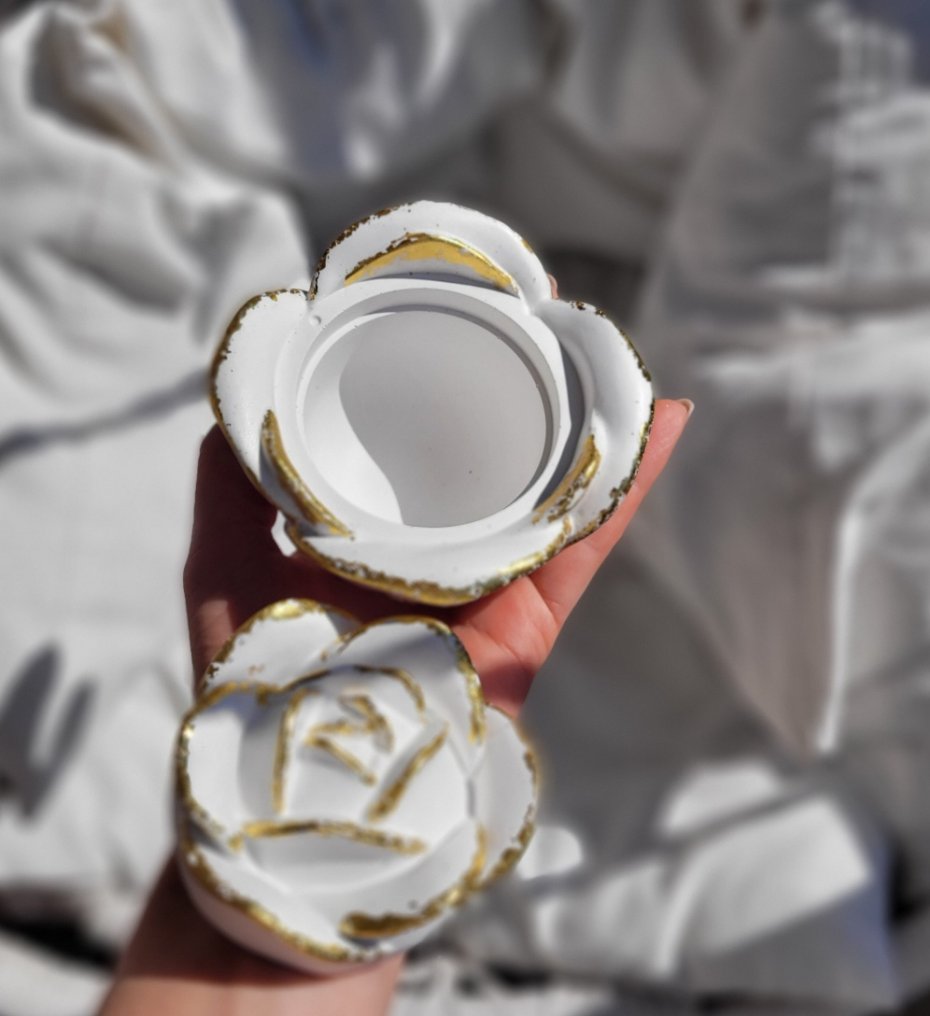Gipsowa szkatułka w kształcie kwiatu – elegancja w każdym płatku!