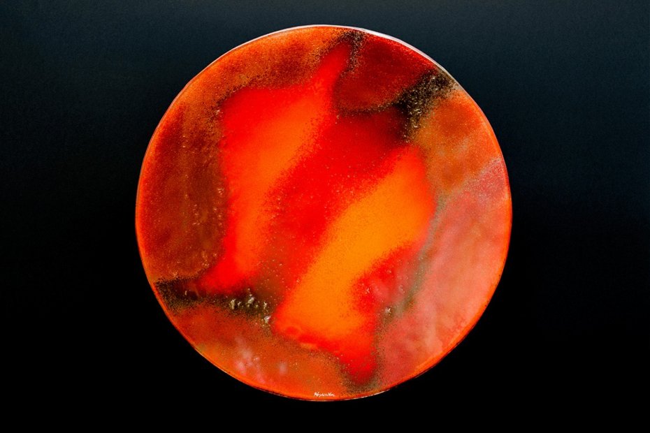 Żywe kolory w odcieniach czerni, pomarańczu, brązu z żyłkmai czerni nadadzą Twojemu wnętrzu wyjątkowy wygląd, a także wzbogacą Twoją zastawę o unikatowy przedmiot.