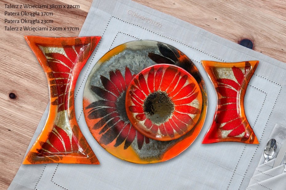 Unikalna i wyjątkowa pod każdym względem, wypalana w wysokiej temperaturze, barwiona i ręcznie cięta szklana patera, a zarazem talerz. Podczas produkcji zastosowano specjalną technikę formowania szkła, co sprawia, że każdy egzemplarz jest wyjątkowy.