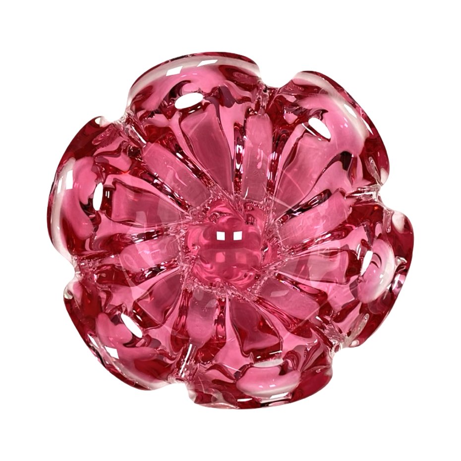 kolorystyka: soczysty róż (odcień fuksji/żurawiny) zamknięty w grubej warstwie bezbarwnego szkła.