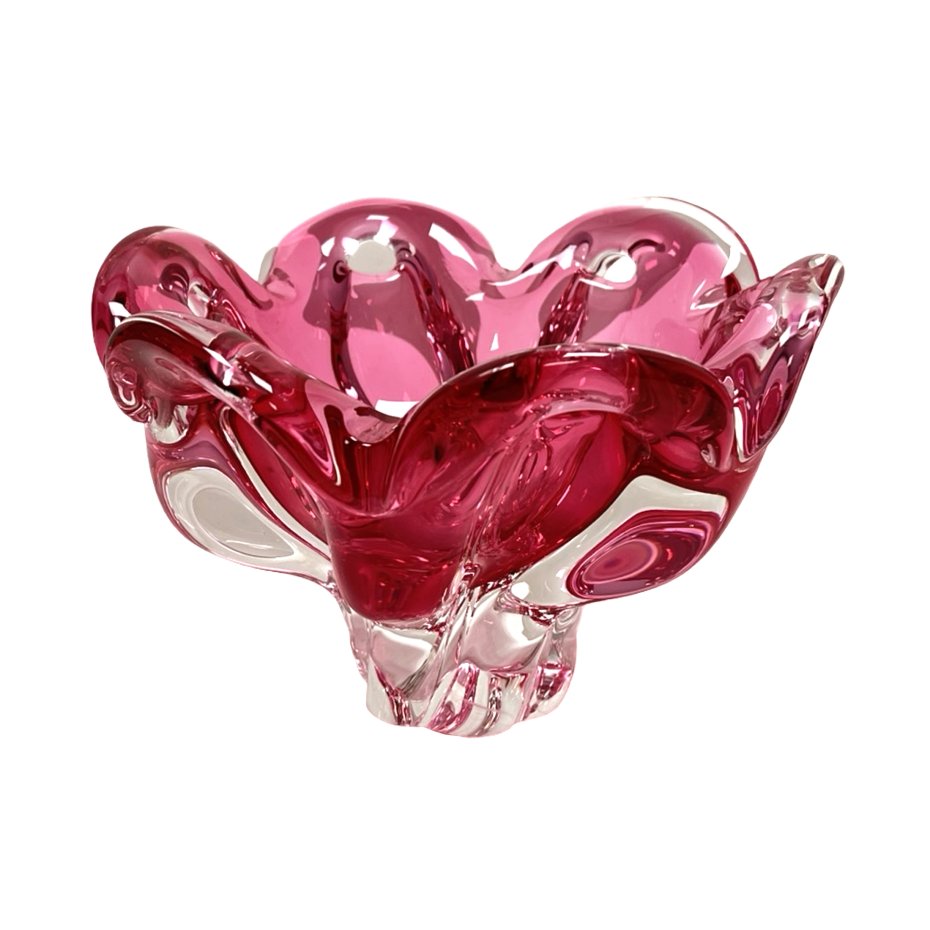Efektowna patera wykonana z ciężkiego szkła artystycznego. projekt przypisywany wybitnemu artyście Josefowi Hospodce dla czechosłowackiej huty Chřibská 1414. przedmiot pochodzi z lat 60. XX wieku i jest ikoną czechosłowackiego designu.