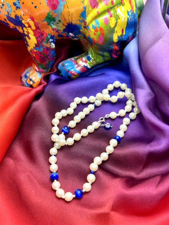 Śliczne perły Mallorca z szafirami, kobaltowym kocim okiem i srebrnym wykończeniem.