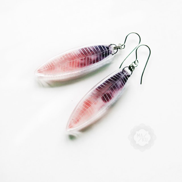 Piękne kolczyki wykonane metodą fusingu ze szkła bezbarwnego, ręcznie malowane i wypalane.