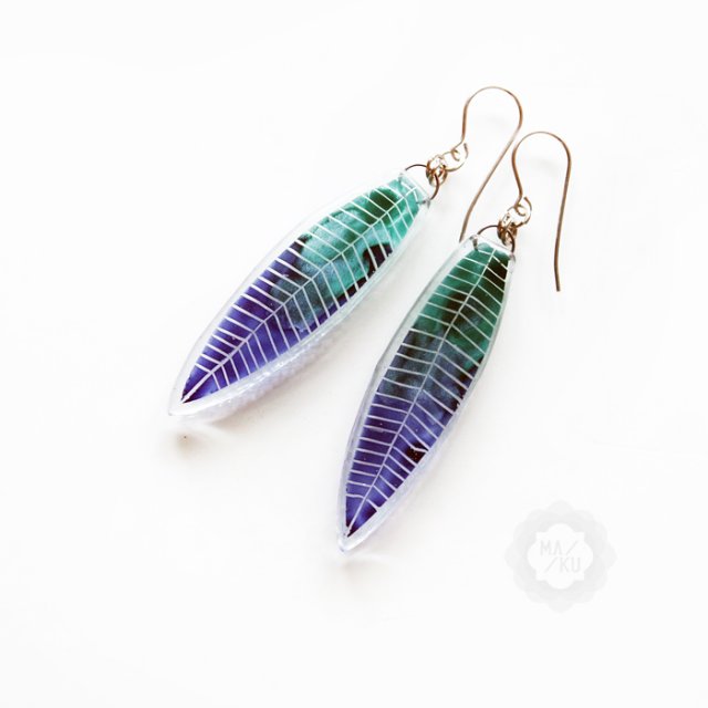 Piękne kolczyki wykonane metodą fusingu ze szkła bezbarwnego, ręcznie malowane i wypalane.