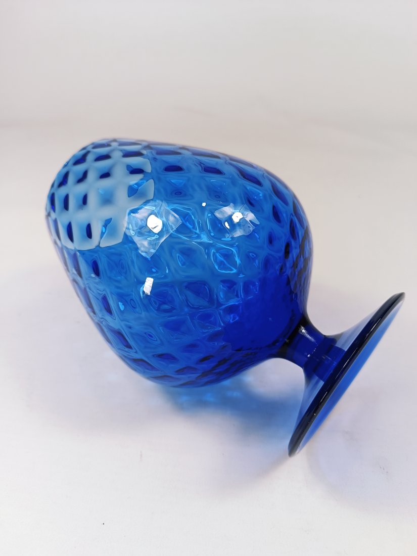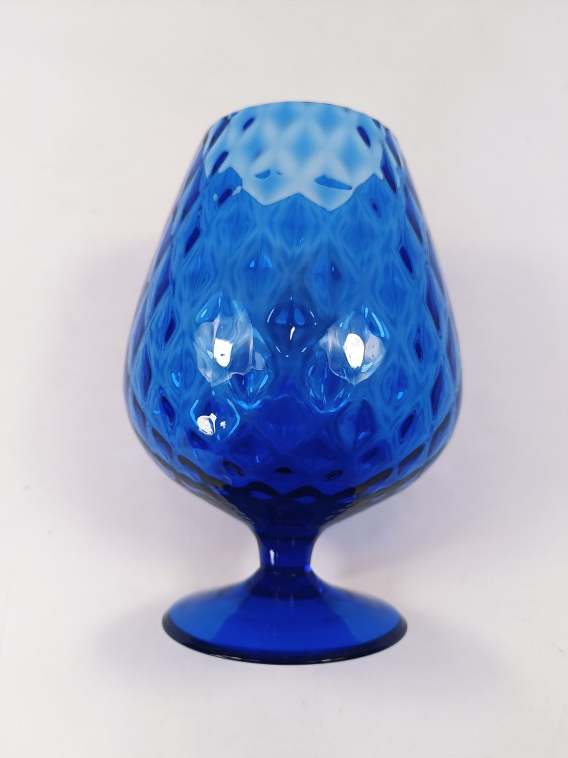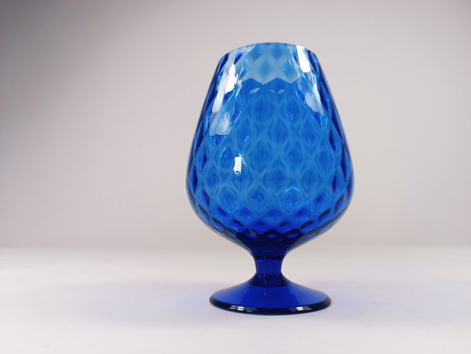 Duży szklany kielich/wazon w kolorze kobaltowym. Wysokość 18 cm, średnica wylotu 8 cm. Dostępny w czterech kolorach.