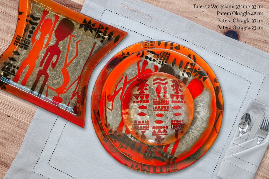Unikalna i wyjątkowa pod każdym względem, wypalana w wysokiej temperaturze, barwiona i ręcznie cięta szklana patera, a zarazem talerz. Podczas produkcji zastosowano specjalną technikę formowania szkła, co sprawia, że każdy egzemplarz jest wyjątkowy.