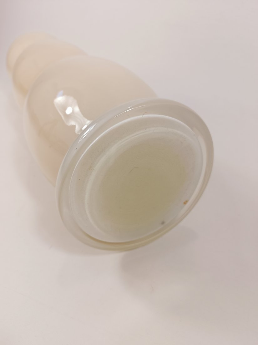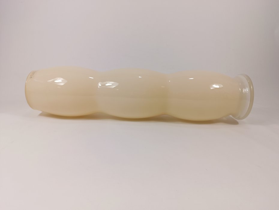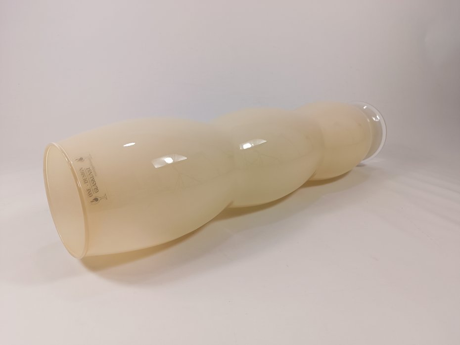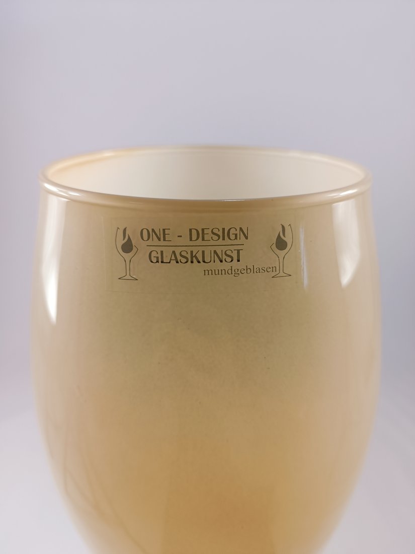Szklany wazon podłogowy One Design Glaskunst w kremowym odcieniu. Wysokość 70 cm. Stan zachowania bardzo dobry, bez uszkodzeń.