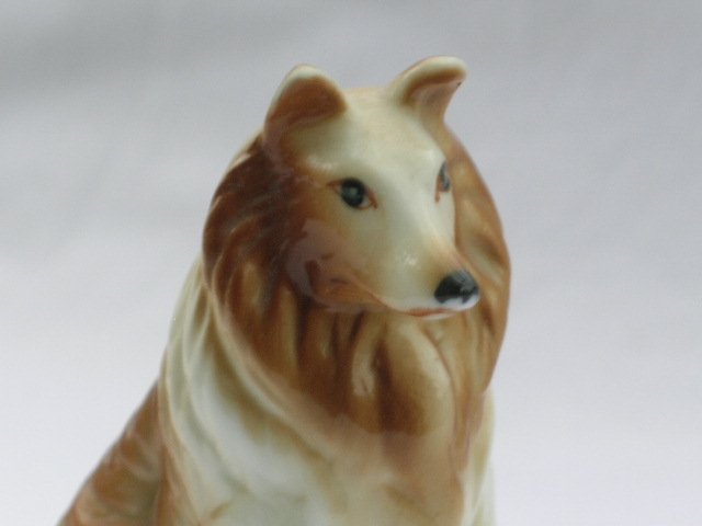 Dawnej daty figurka porcelanowa, nie sygnowana, ręcznie malowana, na błyszcząco-satynująco szkliwiona. Piękna psia obecność :) Do kolekcji i na prezent dla miłośnika rasy collie. 6,5 x 4,5 x 8,5 cm. Stan zachowania bardzo dobry.
