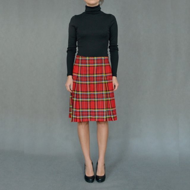 Spódniczka w szkocką kratę z kontrafałdami. Szyta przez odobę prywatną. Wyrazista czerwień nadaje charakteru. Zapinana z boku na zamek.
