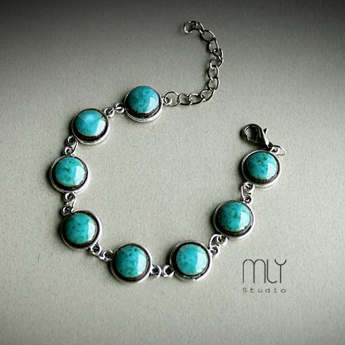 Efektowna bransoletka wykonana z ceramicznych elementów, szkliwionych zółtym szkliwem, elementów metalowych w kolorze starego srebra Obwód regulowany, średnica elementu ceramicznego około 10mm . Polecam . Termin realizacji zamówienia to 1-2 dni.