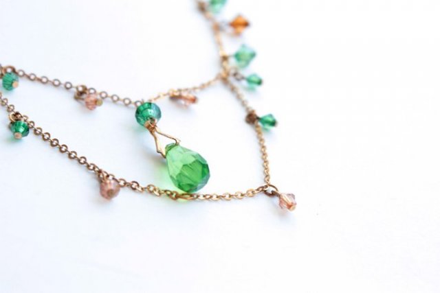 Uroczy naszyjnik w kolorze starego złota z imitacją kamieni.