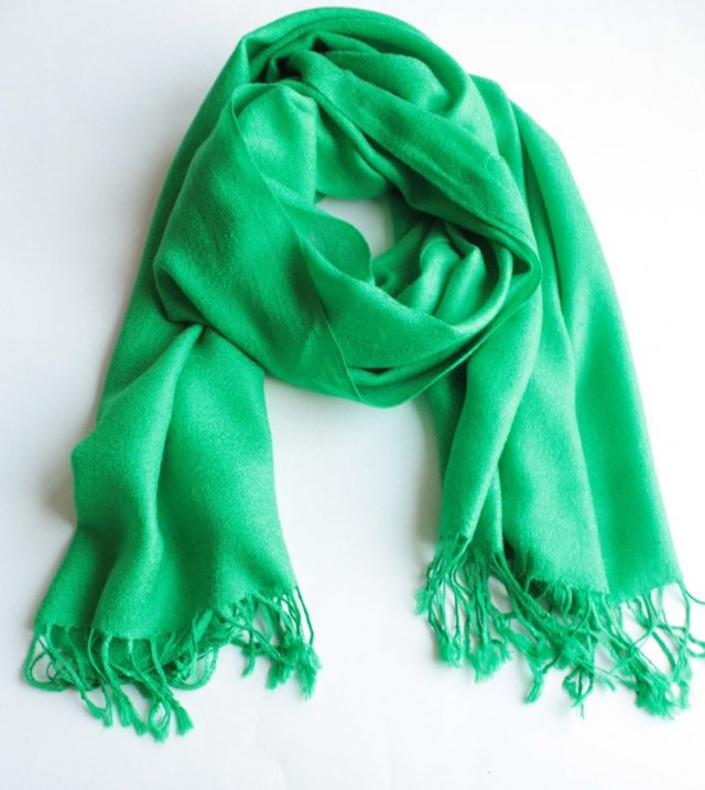 Miękki, duży szal w pięknym, nasyconym odcieniu szmaragdowej zieleni. Kolor jest piękniejszy, nieco ciemniejszy i głębszy niż na zdjęciu.