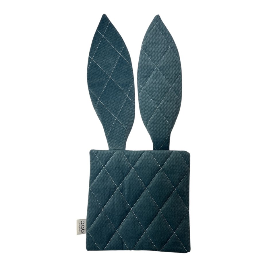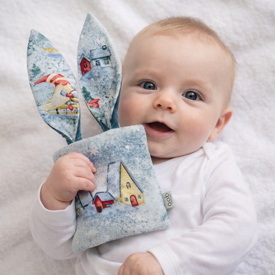 Uszyte z najwyższej jakości, bezpiecznych tkanin: 100 % bawełny i pikowanego velvetu, w środku szeleszcząca folia stymulująca sensorycznie .Długie uszy i kolory z pewnością pobudzą zmysły Maluszka.