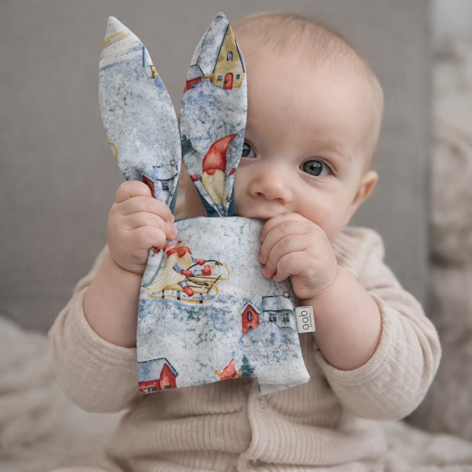 Uszyte z najwyższej jakości, bezpiecznych tkanin: 100 % bawełny i pikowanego velvetu, w środku szeleszcząca folia stymulująca sensorycznie .Długie uszy i kolory z pewnością pobudzą zmysły Maluszka.