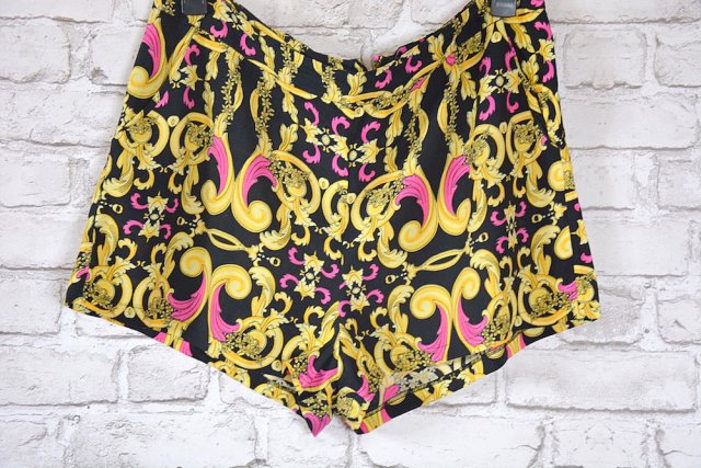 Luźne kolorowe szorty /spodenki w printy w stylu marki Versace, spodenki są luźne , przewiewne nie opinają ciała. Z tylu zapięcie na zamek błyskawiczny, po bokach kieszonki.