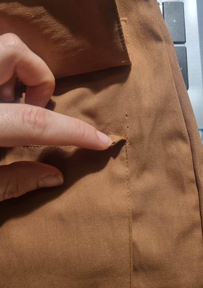 Stan: bardzo dobry z -; lewa kieszeń (pod klapką, więc nie jest to widoczne), jest odrobinę odpruta; jest tam też drobna dziurka w materiale (kreseczka o długości 2 mm).