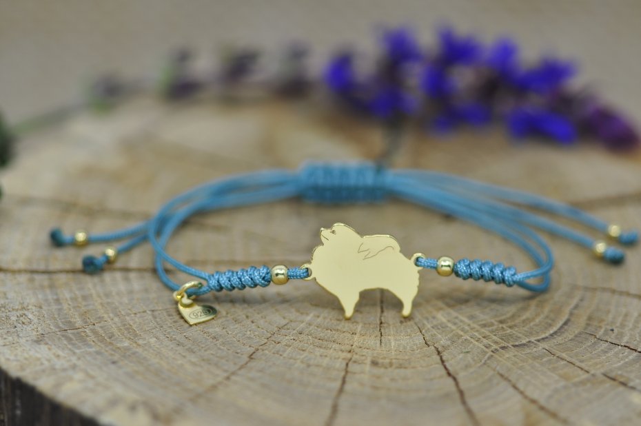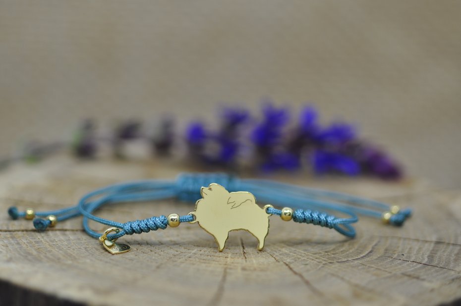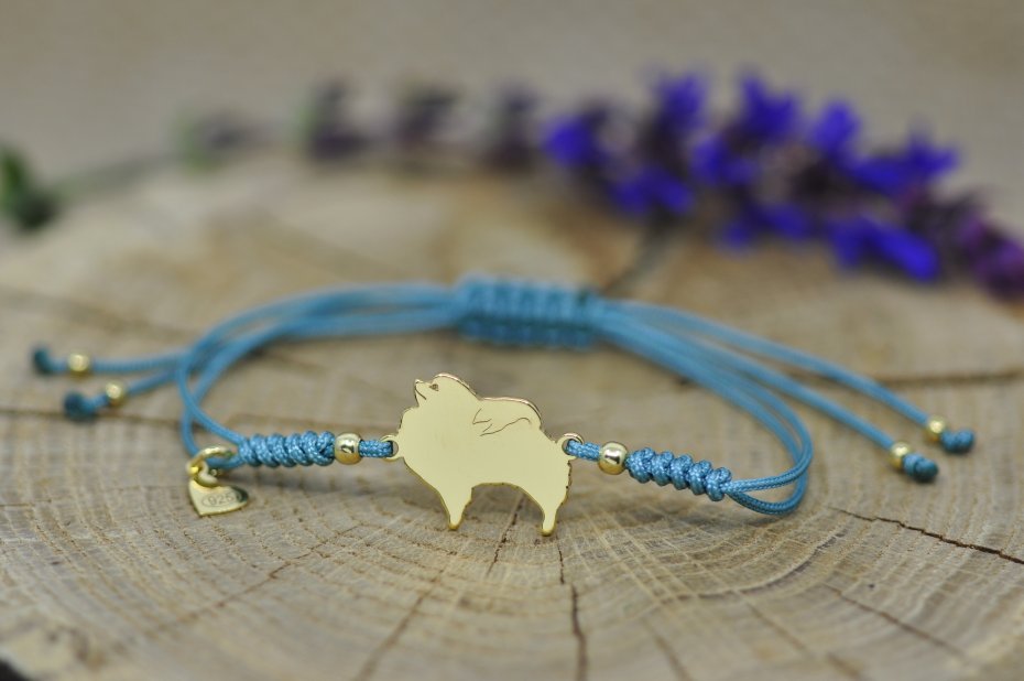 Szpic wykonany ze srebrnej blachy próby 925, wymiary pieska: 19 x 15,2 mm, grubość 0,8 mm oraz srebrne serduszka i kulki.