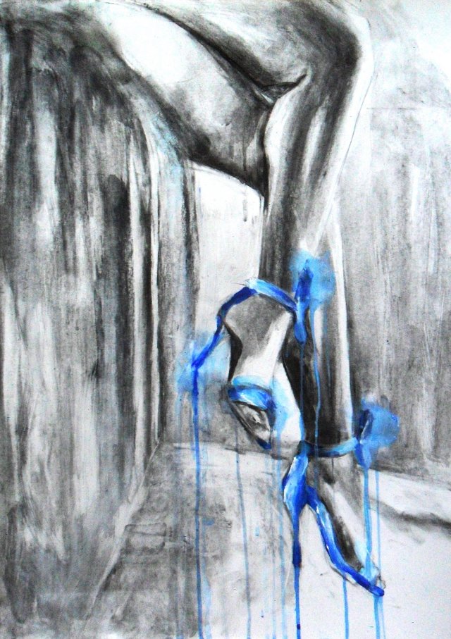 Rysunek w technice węgla z dodatkiem farby akrylowej,brystol kredowy w ciepłej bieli.Format 50x70cm.