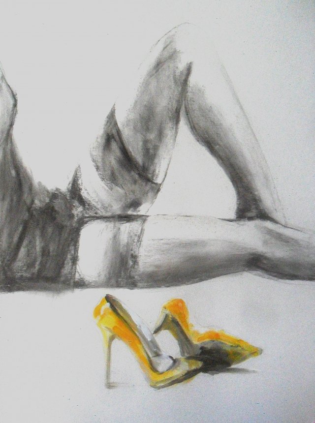 Rysunek w technice węgla i żółtego akrylu na brystolu kredowym w tonacji ciepłej bieli.Format 50x70cm.Polecam.