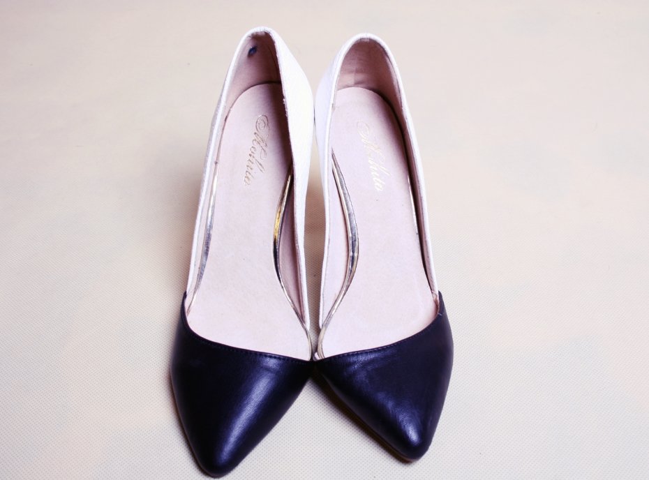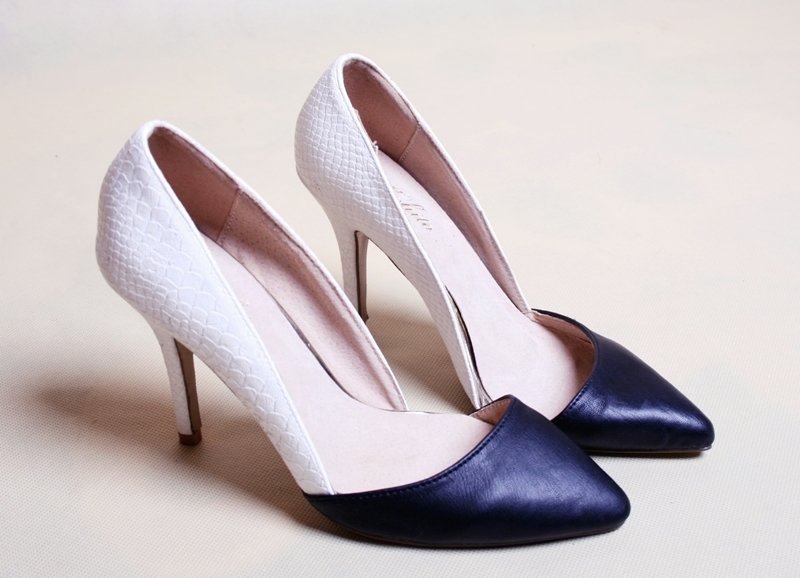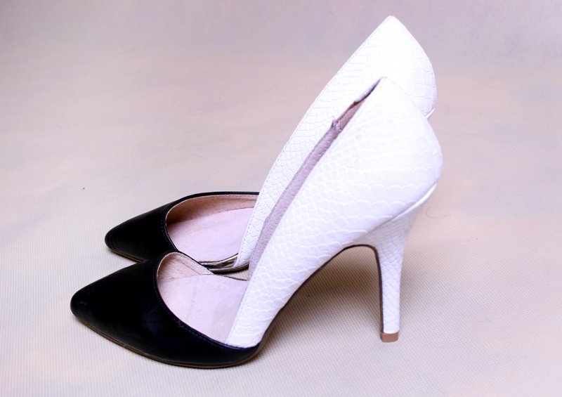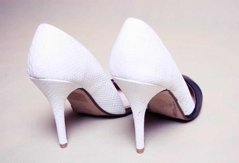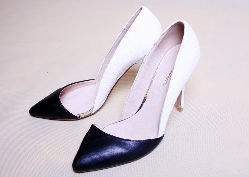 Czarno-białe, eleganckie szpilki marki Mohito.