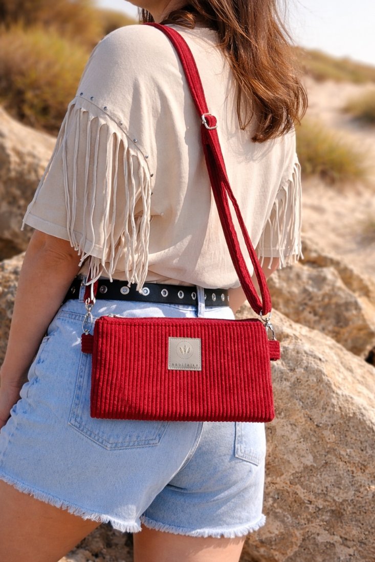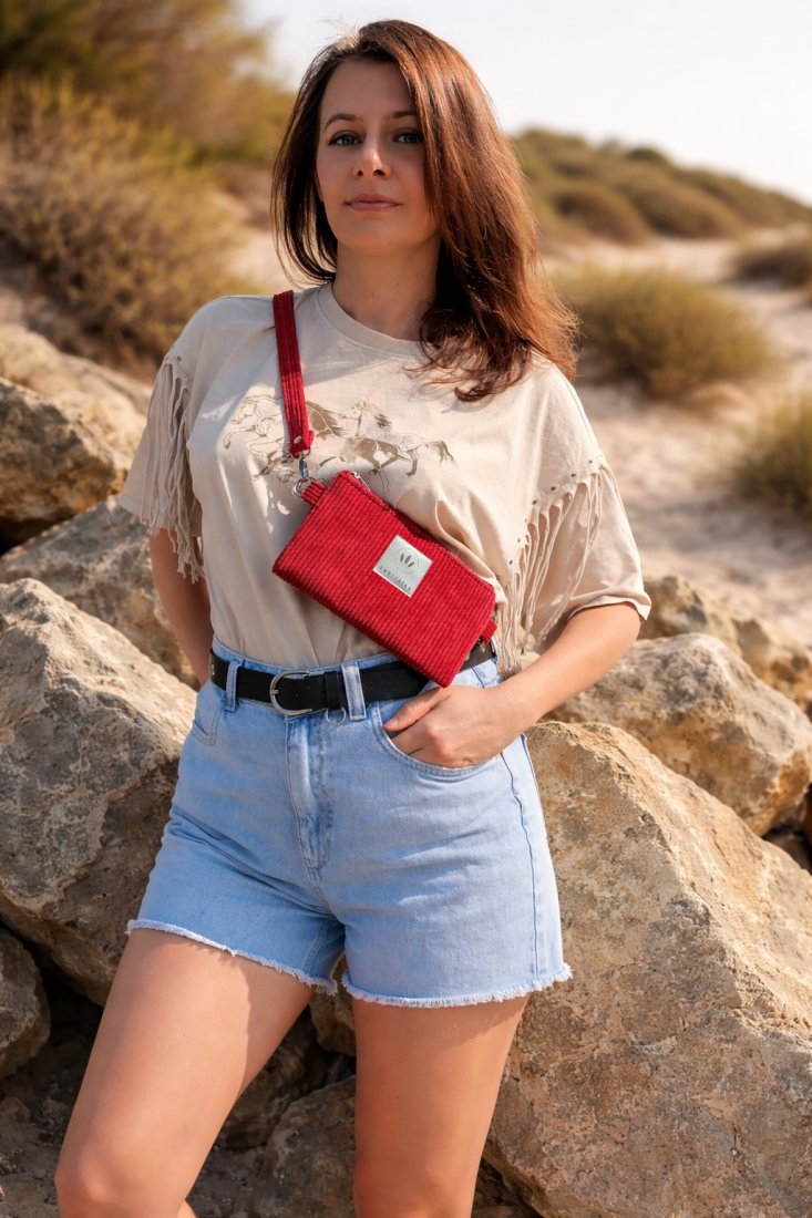 Funkcjonalną mini nerkę na telefon można nosić tradycyjnie na biodrze lub na skos.