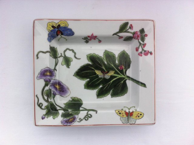 Prawdziwej, głębokiej urody ciężka forma porcelanowa. W całości ręcznie zdobiona - na pierwszym etapie ryta, następnie szkliwami barwnymi wypełniana. Misterna, botaniczna, dekoracyjna i praktyczna :) Wyjątkowa zieleń. Satynowe wykończenie. Specyficzne pieprze podszkliwne przydają autentyczności. 19,5 x 17 x 3,5 cm. Stan zachowania bardzo dobry. Intrygująca sygnatura.