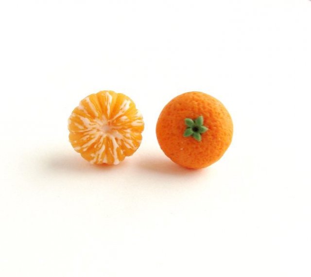 Urocze kolczyki soczyste mandarynki wykonane ręcznie z masy fimo.
