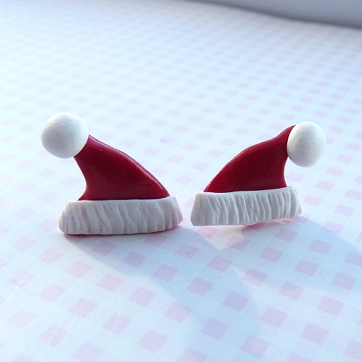 Urocze kolczyki sztyfty-miniaturowe mikołajowe czapeczki:) silikonowe zatyczki w zestawie. Wymiary: ok.1,5x1,8cm. Wysyłam ozdobnie zapakowane;)