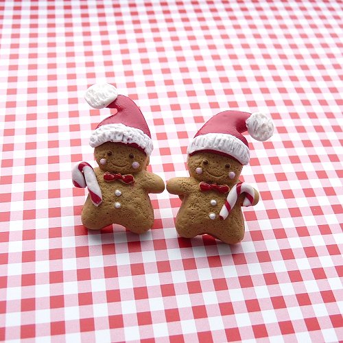 Urocze kolczyki sztyfty z miniaturowymi piernikowymi ludzikami w Mikołajowych czapeczkach:) wysokość od nóżek po pomponik: 3cm, silikonowe zatyczki w zestawie; wysyłam ozdobnie zapakowane;)