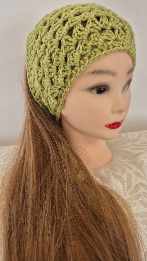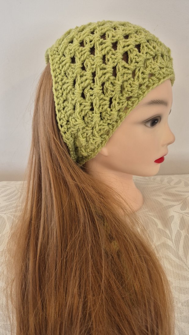 Ażurowy wzór: Klasyczny splot typu "granny stripe/square" zapewnia lekkość i przewiewność – skóra głowy może swobodnie oddychać nawet w upalne dni.
