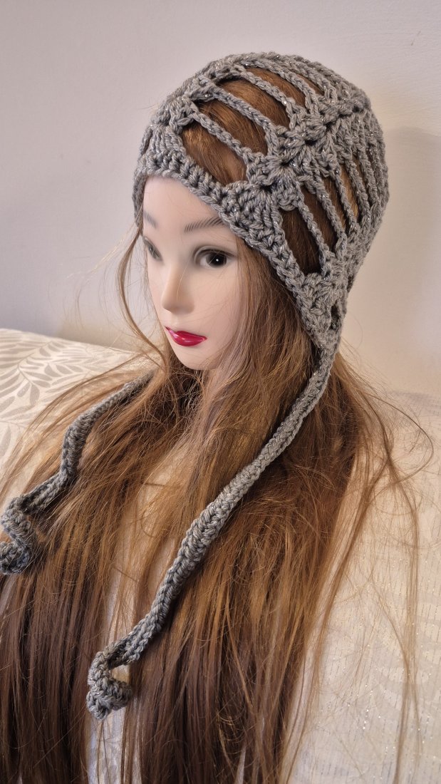 Na sprzedaż oferuję unikatową, ręcznie robioną czapkę wykonaną techniką szydełkową. Czapka ma charakterystyczny wzór przypominający pajęczynę, który świetnie eksponuje włosy.
