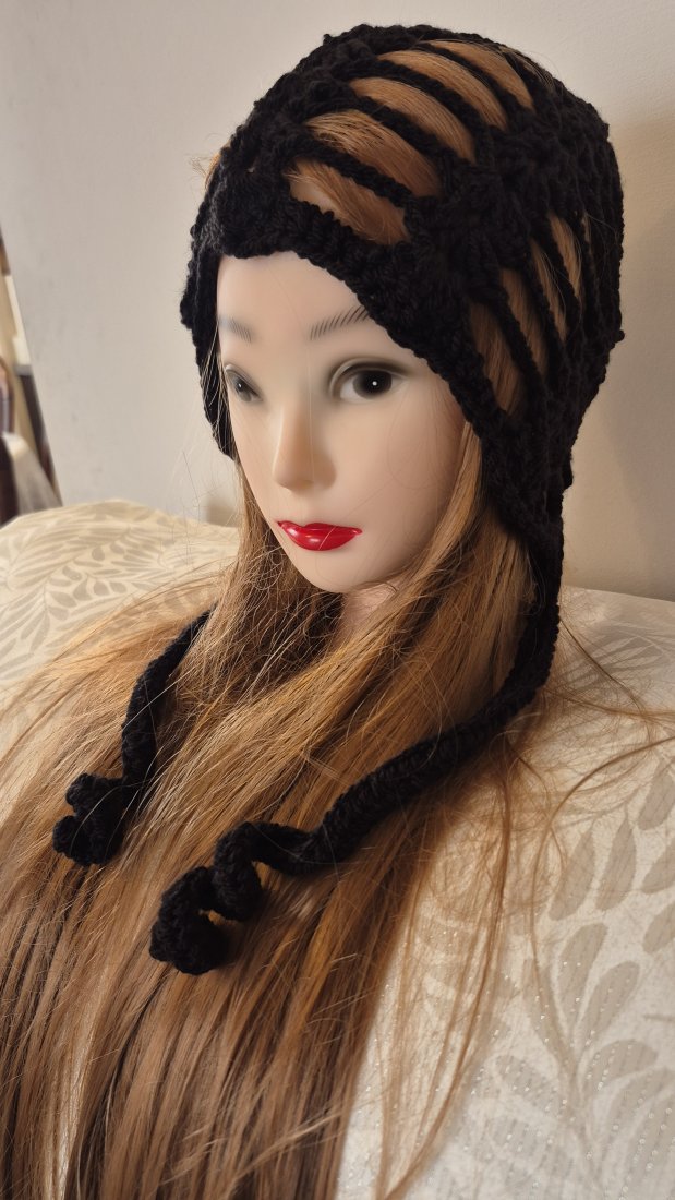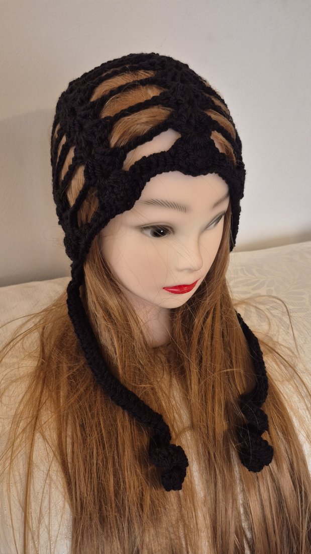 Na sprzedaż oferuję unikatową, ręcznie robioną czapkę wykonaną techniką szydełkową. Czapka ma charakterystyczny wzór przypominający pajęczynę, który świetnie eksponuje włosy.