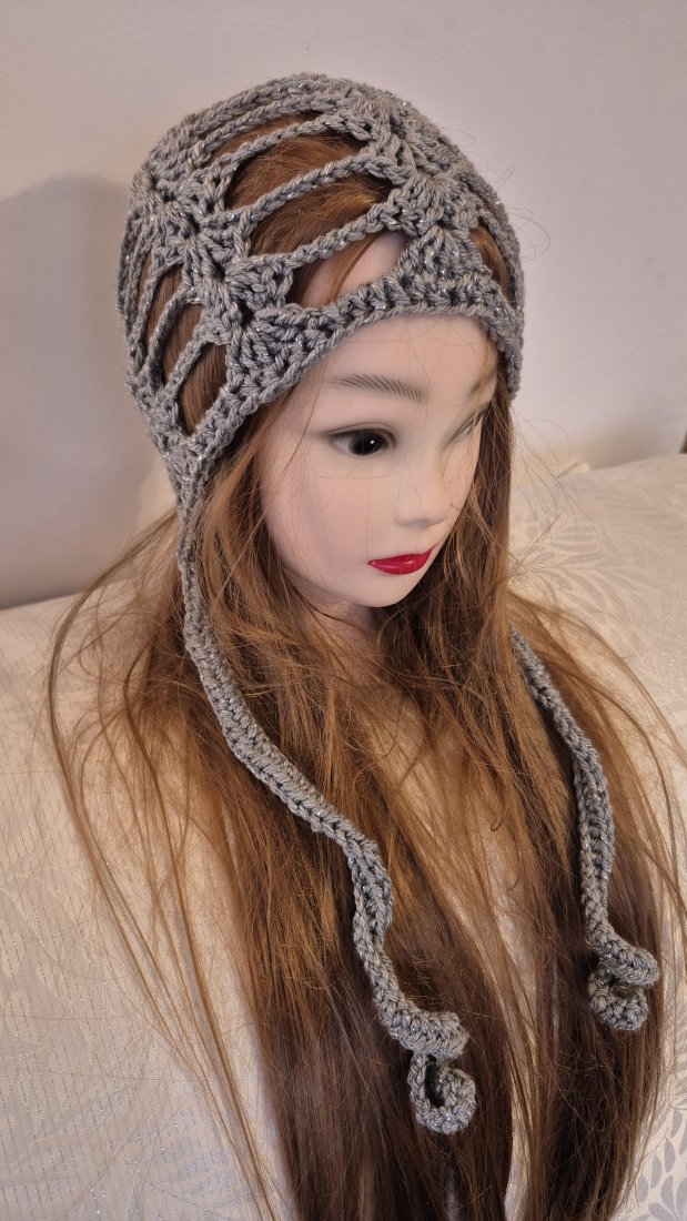 Na sprzedaż oferuję unikatową, ręcznie robioną czapkę wykonaną techniką szydełkową. Czapka ma charakterystyczny wzór przypominający pajęczynę, który świetnie eksponuje włosy.
