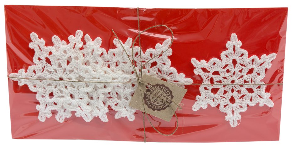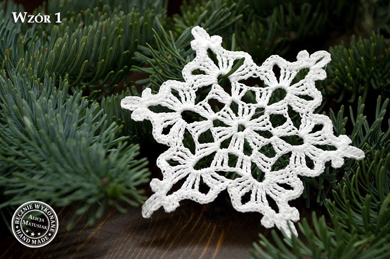 Gwiazdka zrobiona na szydełku bawełnianą białą nicią, wielkość ok. 11cm.