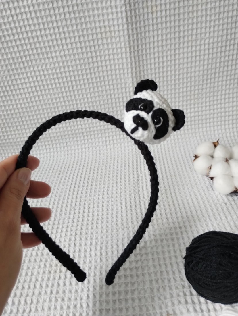 Opaska, którą wybierasz jest wyjątkowa - stworzona ręcznie, szydełkiem. Jej wyjątkowość polega również na głowie pandy, która stanowi jej największą ozdobę. Wzór na tę pandę jest moim autorstwem.