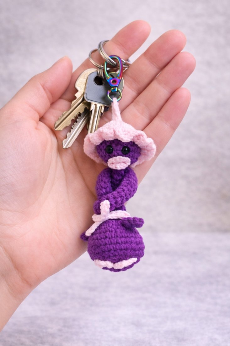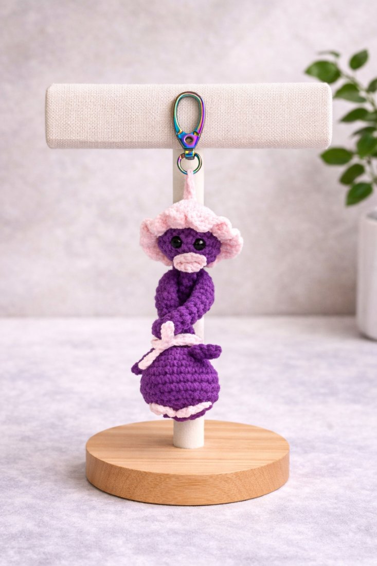 Ten ręcznie wykonany breloczek w stylu amigurumi to połączenie uroku i charakteru.