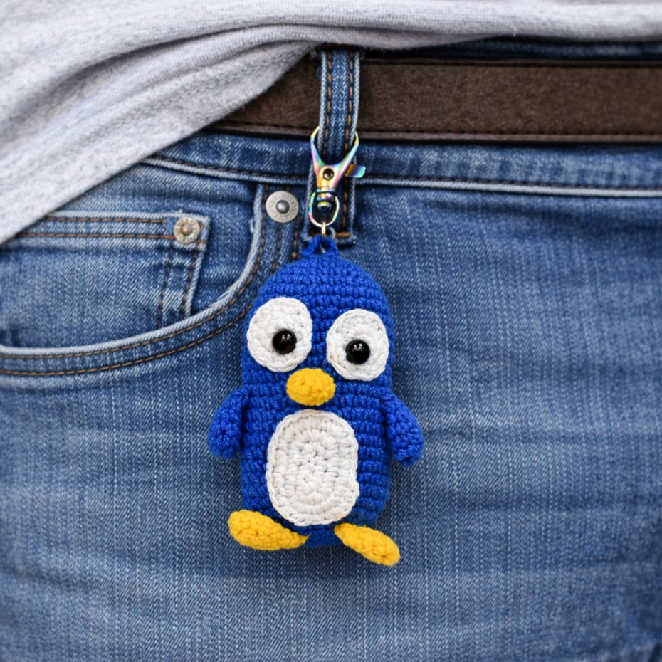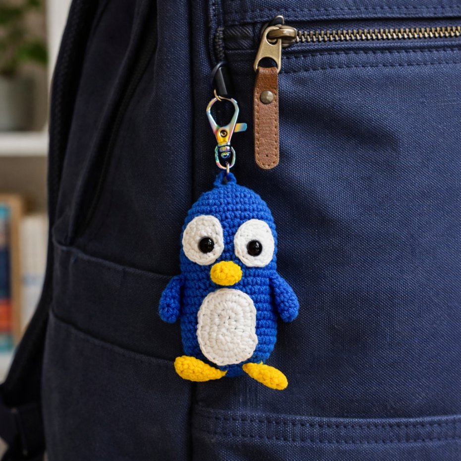 Szydełkowy breloczek Pingwin – ręcznie robiony brelok do kluczy