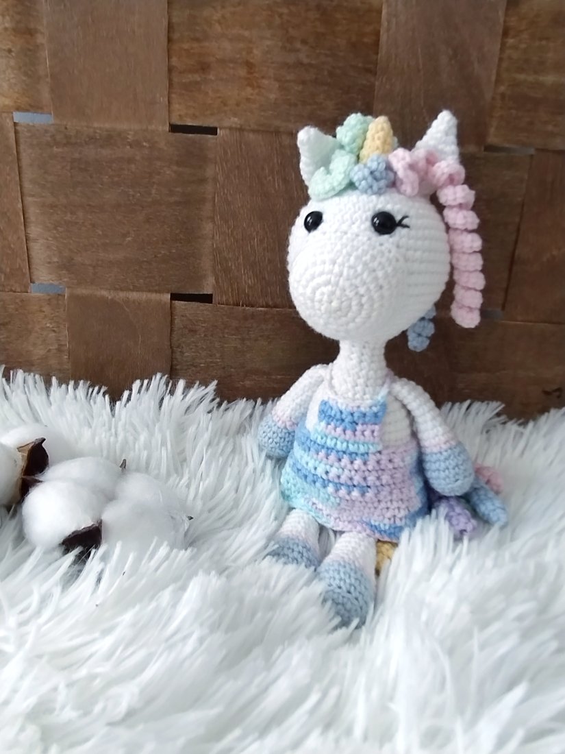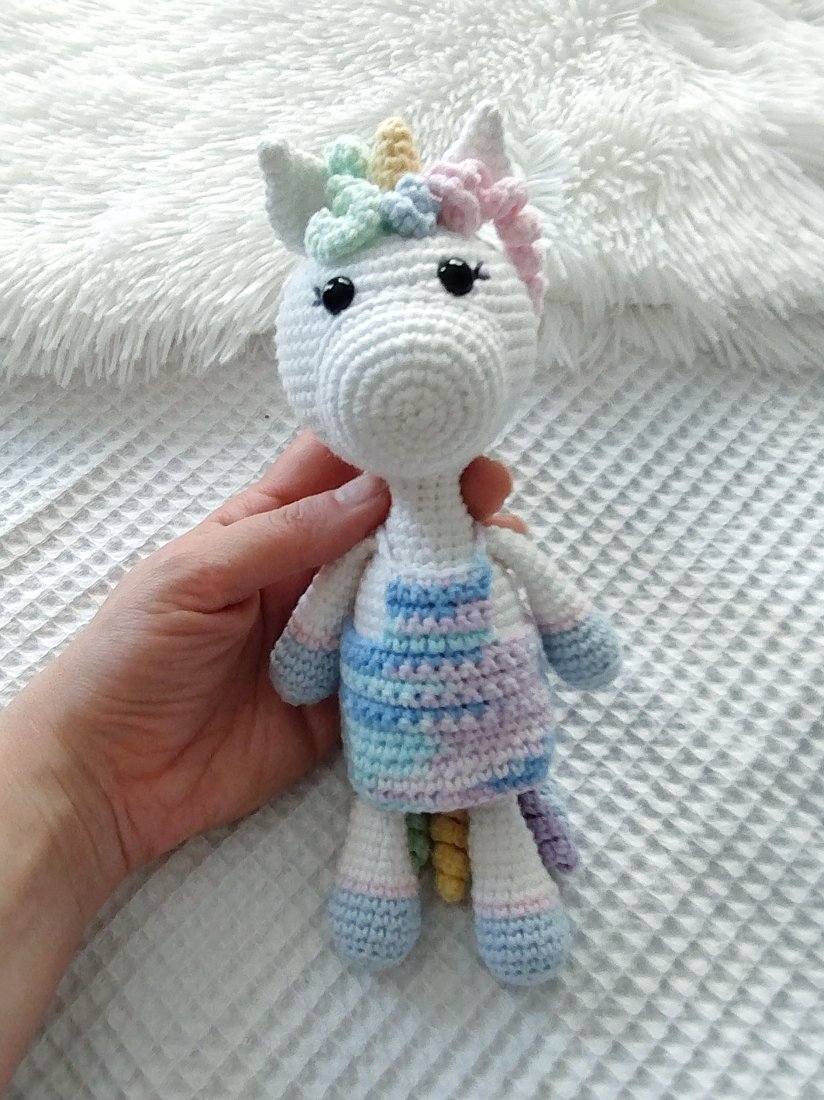 A zabawka to jednorożec Julka. Ma ok 21 cm wzrostu, kolorową grzywę i ogonek, i róg - jak na jednorożca przystało . Będzie doskonałą towarzyszką każdej zabawy.