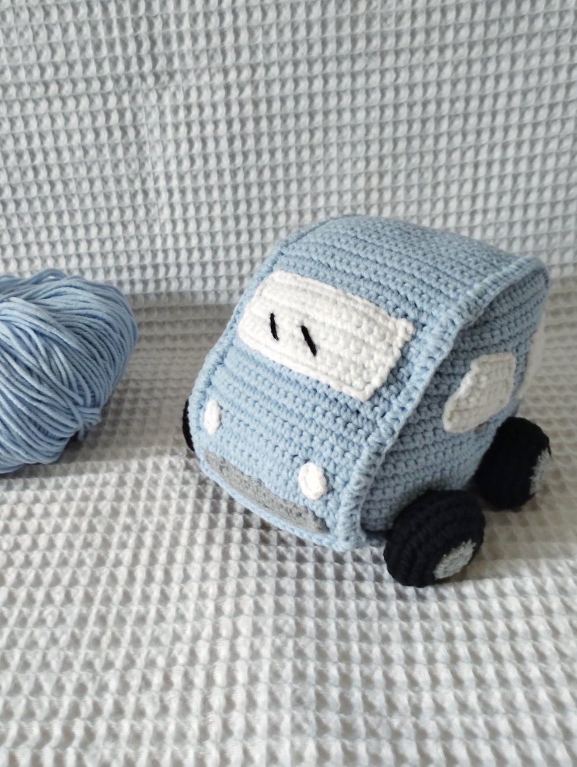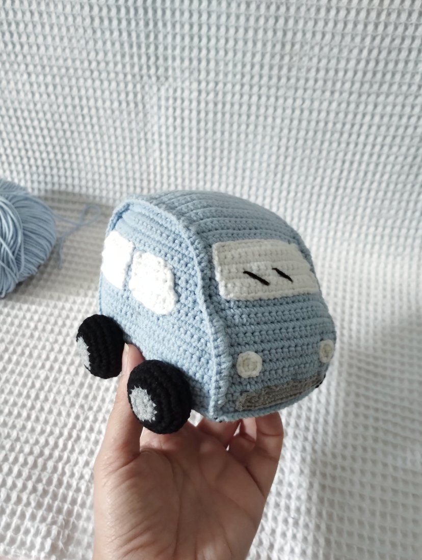 Aby samochodzik był łatwy w utrzymaniu czystości jest wykonany z włóczki zrobionej w 55% z bawełny, a w 45% z akrylu – bezproblemowo przejdzie proces prania zgodny z zaleceniami, które otrzymasz załączone do zabawki.